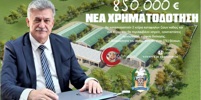 Ο Δήμος Κορινθίων συνεχίζοντας να επιτυγχάνει σημαντικές χρηματοδοτήσεις χρήσιμων και απαραίτητων έργων με σκοπό την αντιμετώπιση και επίλυση χρόνιων προβλημάτων, ανακοινώνει την ένταξη στο Πρόγραμμα «ΦΙΛΟΔΗΜΟΣ ΙΙ» και στο πλαίσιο της Πρόσκλησης ΧΙΙ, του έργου: «Κατασκευή πανσιόν φιλοξενίας αδέσποτων ζώων και δημοτικού κτηνιατρείου Δήμου Κορινθίων & Δήμου Βέλου Βόχας» συνολικού προϋπολογισμού 850.000 €, με δικαιούχο φορέα τη διαδημοτική συνεργασία Δήμου Κορινθίων και Βέλου Βόχας και φορέα υλοποίησης το Δήμο Κορινθίων.