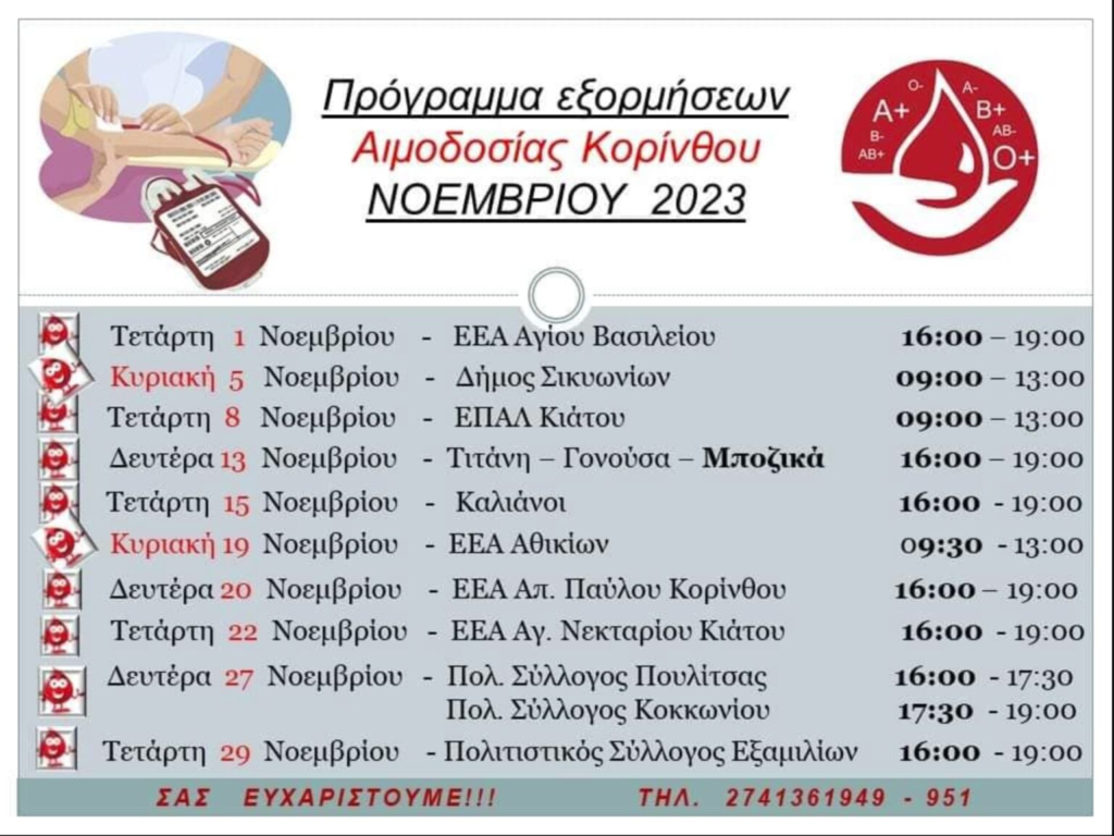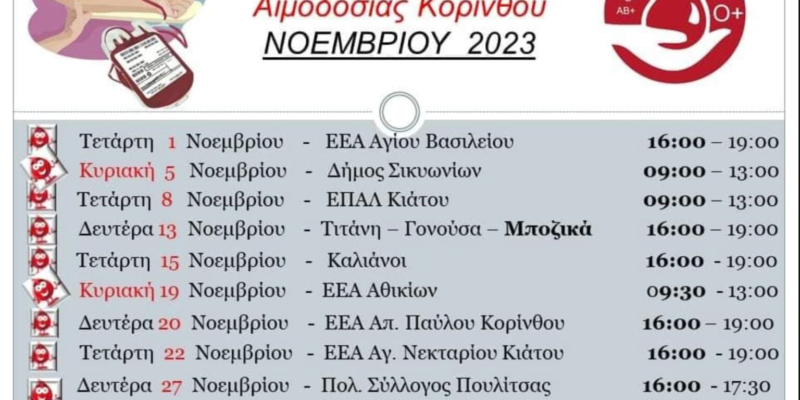 Και τον Νοέμβριο η Κορινθία δίνει αίμα – Εσείς σε ποια αιμοδοσία θα δώσετε το παρόν;