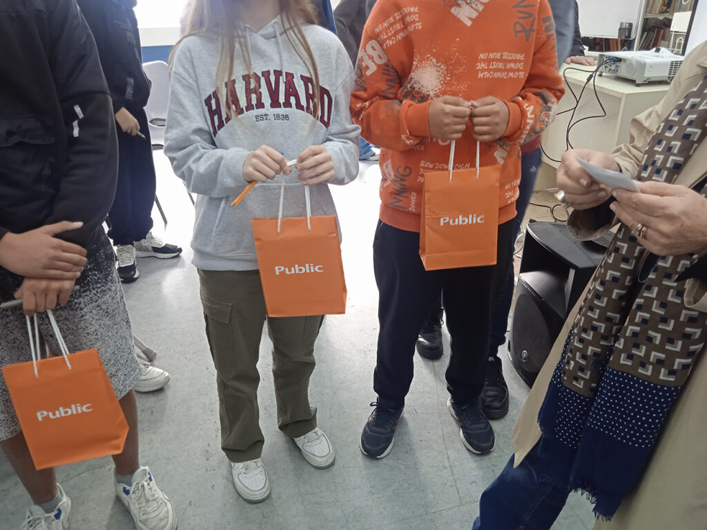 Οι μαθητές και οι μαθήτριες άκουσαν με προσοχή την κα Σαλκιτζόγλου και στο τέλος της ομιλίας έγραψαν σε χαρτάκια τις σκέψεις τους για εθελοντικές δράσεις που θα ήθελαν να πραγματοποιηθούν, συμμετέχοντας με τον τρόπο αυτό σε μια κλήρωση με τρεις νικητές και δώρο από ένα βιβλίο.