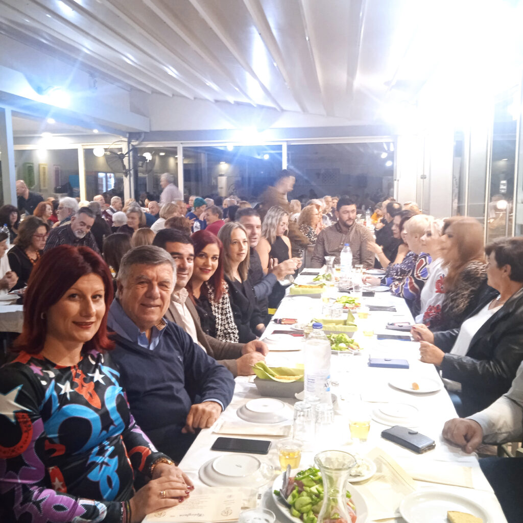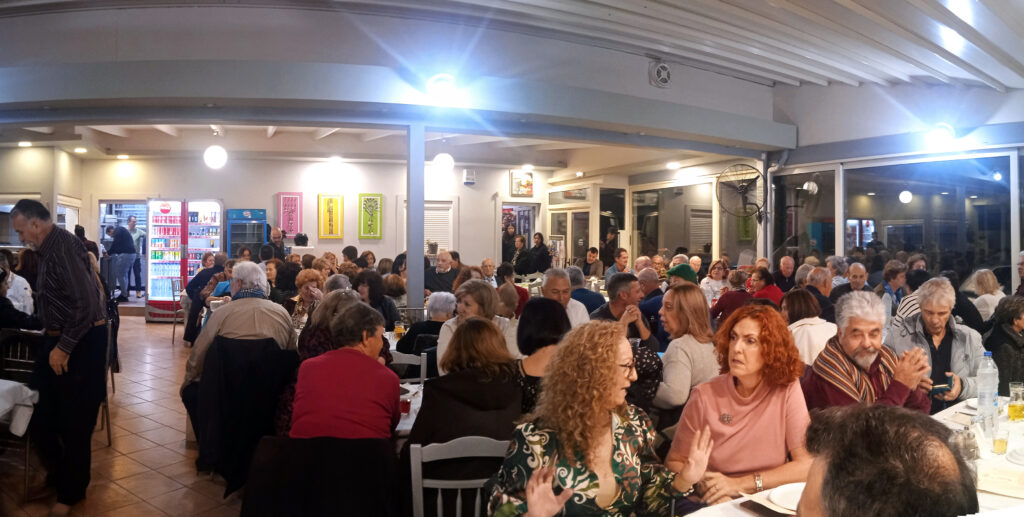 Η βραδιά στη συνέχεια κύλησε με τραγούδι και ζωντανή μουσική από τον Άρη Σταύρου, την Μυρτώ Καπώλη και το συγκρότημα «ΔιαΠασών», αλλά και πολύ χορό από τους συνδαιτημόνες.