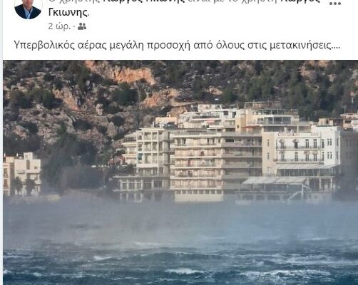Ο Γιώργος Γκιώνης, ανέβασε μια φωτογραφία από τη θάλασσα του Λουτρακίου που δείχνει την ισχυρή ταχύτητα των ανέμων που πνέουν αυτή την ώρα και τη συνόδευσε με το σχόλιο: “Υπερβολικός αέρας μεγάλη προσοχή από όλους στις μετακινήσεις…”