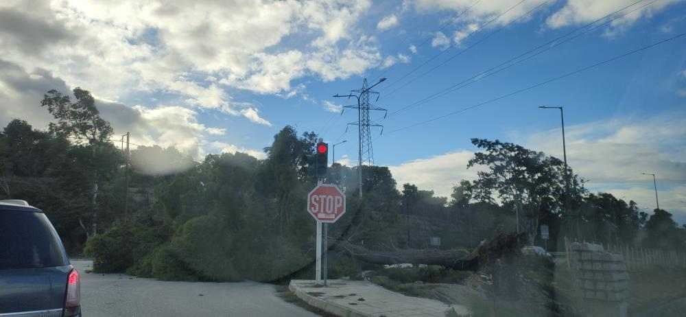 Nωρίτερα σημειώθηκε πτώση δέντρου στα φανάρια του Αλεξάνδρειου Συνεδριακού Κέντρου Λουτρακίου επί της επαρχιακή οδού Ισθμού – Λουτρακίου στο ρεύμα προς Λουτράκι στην επιχείρηση οικοδομικών υλικών ΣΑΚΕΛΛΑΡΙΟΥ Γ. ΧΑΡΑΛΑΜΠΟΣ.