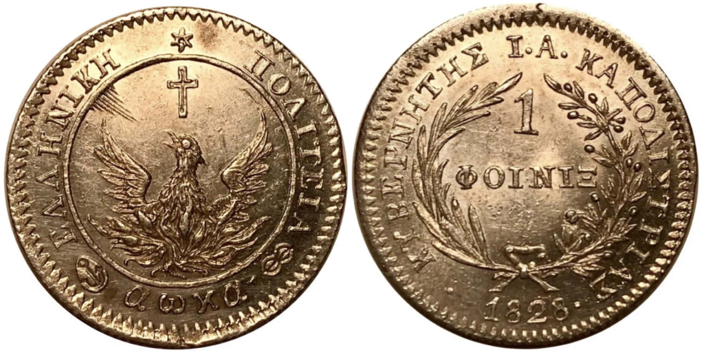 Κι όμως, επί αιώνες, χρυσός και ασήμι αποτελούσαν την εγγύηση της αξίας των περισσότερων νομισμάτων, είτε άμεσα, όταν αποτελούσαν την πρώτη ύλη για την κατασκευή τους, είτε έμμεσα, όταν τα χάρτινα τραπεζογραμμάτια μπορούσαν να μετατραπούν σε ορισμένα γραμμάρια μετάλλου. Ο φοίνικας του Καποδίστρια περιλάμβανε 3,747 γραμμάρια ασήμι, ενώ η αρχική πρόβλεψη ήταν να κοπούν και χρυσά νομίσματα των 20 και 10 φοινίκων. Στην πράξη, τα οικονομικά του νεοσύστατου κράτους δεν επέτρεψαν καμία χρυσή κοπή, ενώ ελάχιστοι ασημένιοι φοίνικες τυπώθηκαν.