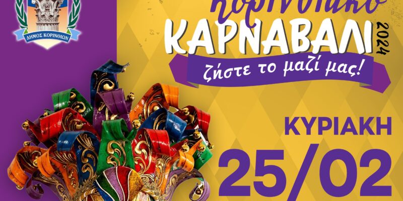Ο Δήμος Κορινθίων σας προσκαλεί στην έναρξη αποκριάτικων εκδηλώσεων που θα πραγματοποιηθούν την Κυριακή 25 Φεβρουαρίου 2024 στην πλατεία Παναγή Τσαλδάρη. Ετοιμαζόμαστε και φέτος να γιορτάσουμε τις αποκριές με το παραδοσιακό πλέον, ΚΟΡΙΝΘΙΑΚΟ ΚΑΡΝΑΒΑΛΙ 2024, με φετινό σλόγκαν «Ζήστε το Μαζί μας».
