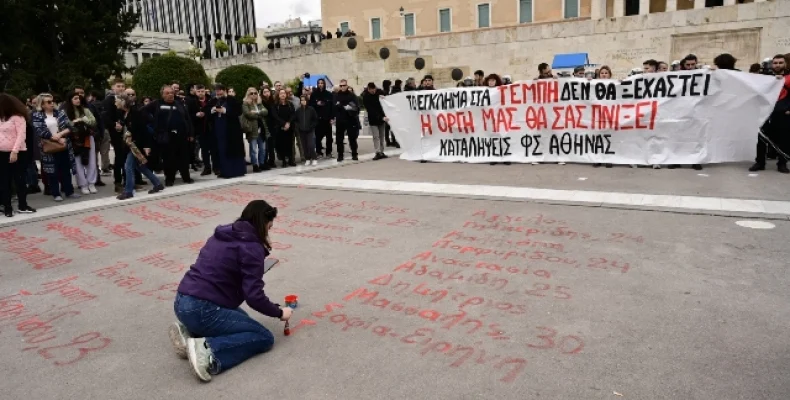 Μετά τις χθεσινές (28/2) συγκεντρώσεις πλήθος κόσμου μαζεύτηκε στο μνημείο του Άγνωστου Στρατιώτη στο Σύνταγμα και έγραψε με κόκκινη μπογιά τα ονόματα των 57 θυμάτων της τραγωδίας των Τεμπών.