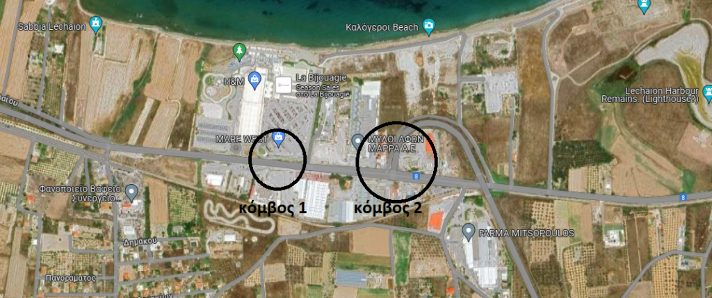 Πρόκειται για ένα έργο της Περιφέρειας Πελοποννήσου, για τρεις κόμβους: οι δύο είναι στην παλαιά Εθνική Οδό Κορίνθου Πατρών, στο ύψος του Mare West και ο τρίτος στην Παλαιά Εθνική Οδό Αθηνων Κορίνθου, στους Αγίους Θεοδώρους στην Motor Oil. Εκεί έχει μπει πλέον ο εργολάβος, ο οποίος αυτή την στιγμή κάνει τον κόμβο στην Motor Oil. Θα μπει μετά και για τους δύο κόμβους στο Mare West έναν ακριβώς στην είδοσο του εμπορικού κέντρου και ένα λίγο πιο κάτω, μετά την αερογέφυρα.