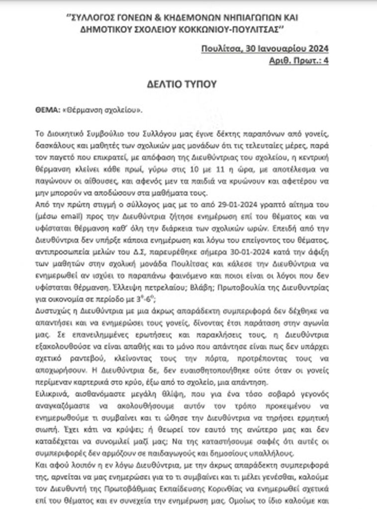 Έκλεισαν το σχολείο στην Πουλίτσα λόγω… κακοκαιρίας – Ή μήπως όχι; Η κόντρα γονέων – διευθύντριας και η επιστολή τους