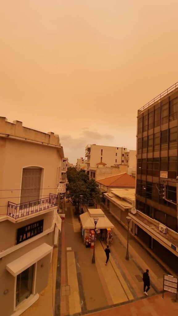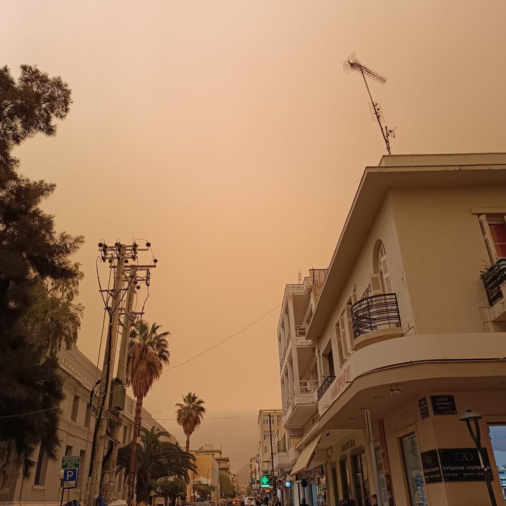 Απίθανες έως και πρωτοφανείς εικόνες ανεβάζουν στα σόσιαλ μίντια οι Κορίνθιοι από την πόλη που καλυπτει ένα βαθύ πεπλο αφρικανικής σκόνης.