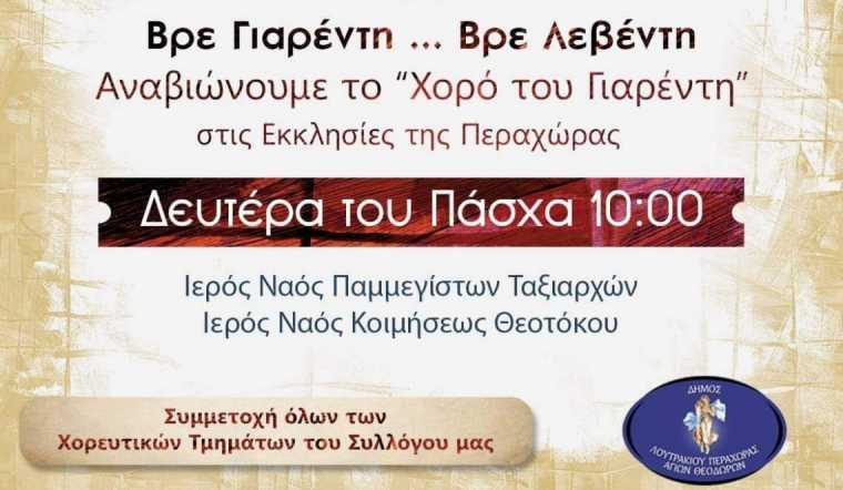 Αναβίωση του ”Χορού του Γιαρέντη” θα πραγματοποιηθεί την Δευτέρα του Πάσχα στις 6 Μαΐου στις εκκλησίες της Περαχώρας.