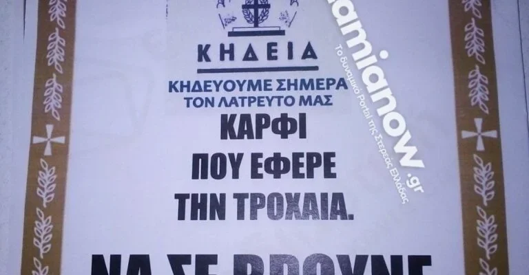 Το κηδειόχαρτο που κυκλοφόρησε στη Λαμία
