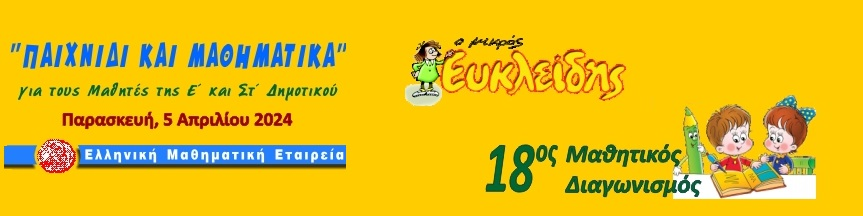 Την Παρασκευή 5 Απριλίου στον 18ο Πανελλήνιο Διαγωνισμό “Παιχνίδι και Μαθηματικά” για μαθητές Ε’ και Στ’ τάξης διακρίθηκαν οι μαθητές και μαθήτριες: