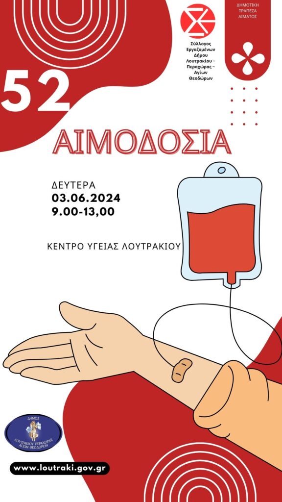 Εθελοντική Αιμοδοσία, 3 June @ 09:00 – 13:00 | Κέντρο Υγείας Λουτρακίου. Μάθετε περισσότερα: https://loutraki.gov.gr/en/event/aimodosia/