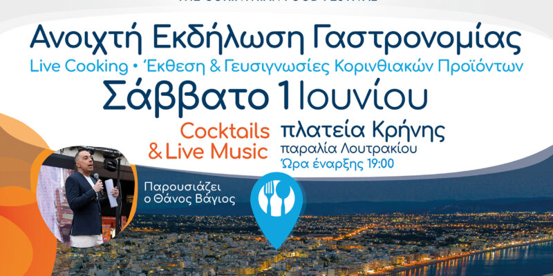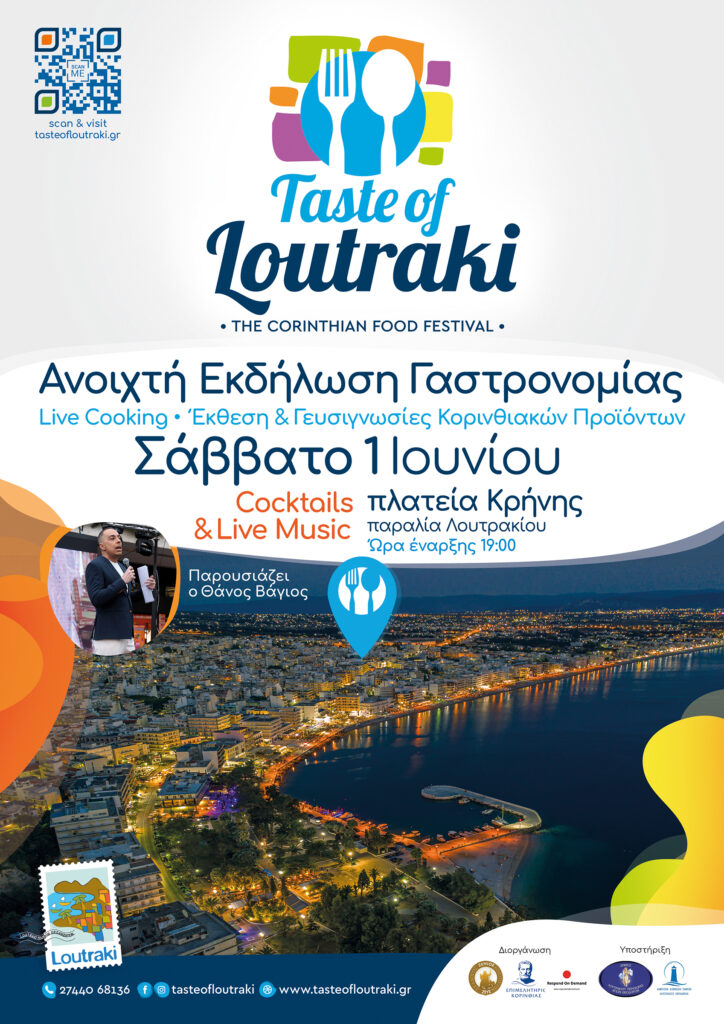 Γαστρονομικό Φεστιβάλ στο Λουτράκι με πρωταγωνιστές τις τοπικές επιχειρήσεις εστίασης και φιλοξενίας. Μάθετε περισσότερα: https://loutraki.gov.gr/en/event/taste-of-loutraki-the-corinthian-food-festival-2/