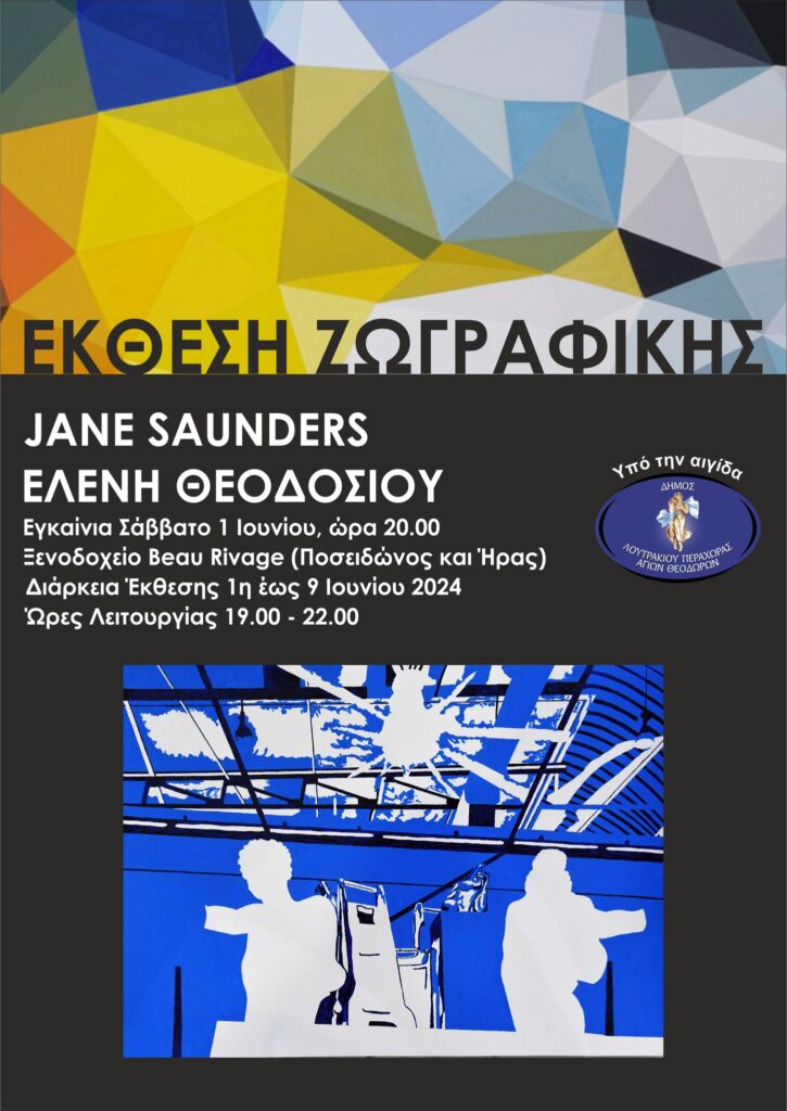Έκθεση Ζωγραφικής – JANE SAUNDERS & ΕΛΕΝΗ ΘΕΟΔΟΣΙΟΥ: 1 June @ 19:00 – 9 June @ 22:00 | Beau Rivage. Διάρκεια Έκθεσης: 1-9 Ιουνίου 2024 | Ώρες Λειτουργίας: 19:00 – 22:00 Μάθετε περισσότερα: https://loutraki.gov.gr/en/event/ekthesi-zografikis-jane-saunders-eleni-theodosioy/