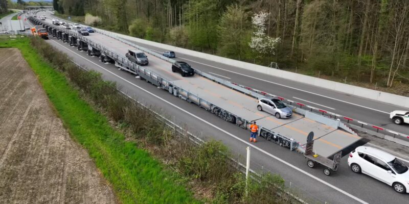 Τη λύση στην ταλαιπωρία των οδηγών στους δρόμους όπου πραγματοποιούνται έργα έρχεται να δώσει η κινητή γέφυρα-εργοστάξιο που κατασκεύασαν οι Ελβετοί, συγκεκριμένα η ASTRA, η Ελβετική Υπηρεσία Ομοσπονδιακών Δρόμων.