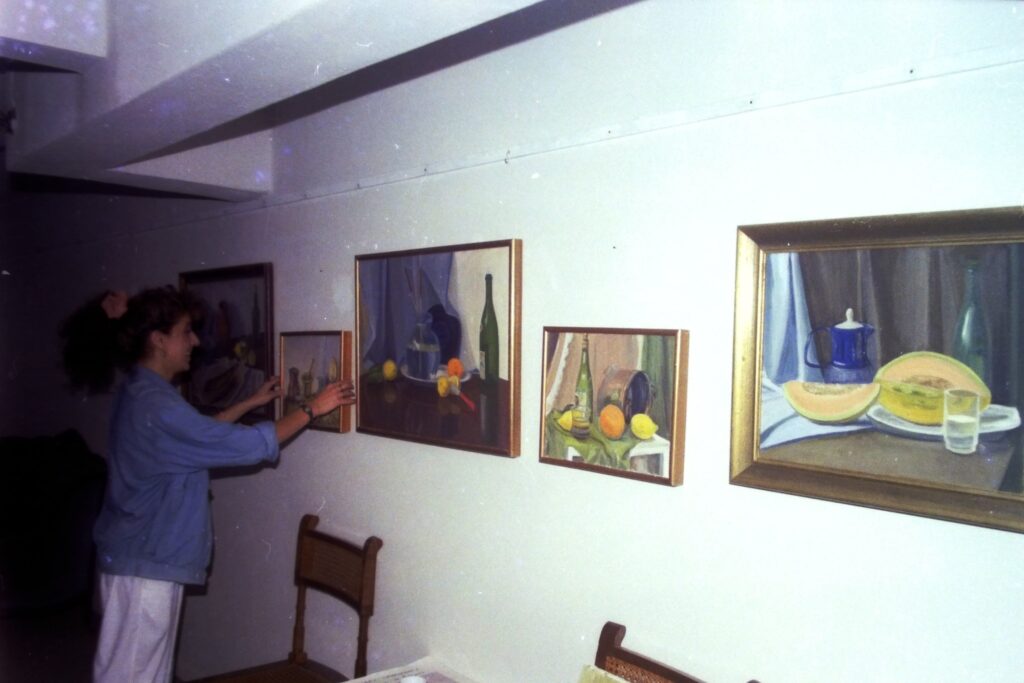 Πρόκειται για την έκθεση ζωγραφικής των μαθητών της Σχολής Ζωγραφικής της Παυλίνας Μπεχράκη, που στεγαζόταν τότε στην οδό Αποστόλου Παύλου στην Κόρινθο. Η έκθεση έγινε στα μέσα της δεκαετίας του ’80, μετά την ολοκλήρωση των μαθημάτων.