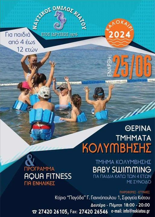 Ο Ναυτικός Όμιλος Κιατου καλωσορίζει το καλοκαίρι με την καθιερωμένη οργάνωση μαθημάτων κολύμβησης για παιδιά ηλικίας 4 έως 12 ετών.