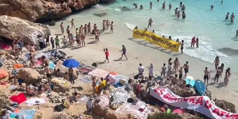Η καθιστική διαμαρτυρία στην παραλία Ocupem Les Nostres Platges -που μεταφράζεται ως «Καταλάβετε τις παραλίες μας»- ήταν η τελευταία σε μια σειρά διαδηλώσεων από ντόπιους κατά του μαζικού τουρισμού στη Μαγιόρκα. Κατηγορούν τους αλλοδαπούς για την αύξηση των τιμών των ακινήτων κατά 250% σε μια δεκαετία, ενώ οι στάσιμοι μισθοί παραμένουν από τους χαμηλότερους στην Ισπανία, σημειώνει η Daily Mail.