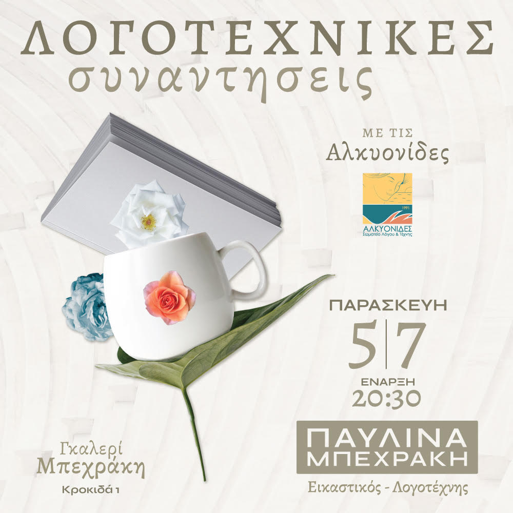 To Σωματείο Λόγου και Τέχνης ΑΛΚΥΟΝΙΔΕΣ σας προσκαλεί στην τελευταία εκδήλωση τιμής προσωπικοτήτων, εντός και εκτός των τειχών, γι αυτή τη σεζόν, τιμώντας την ΠΑΥΛΙΝΑ ΜΠΕΧΡΑΚΗ, Eικαστικό-Συγγραφέα-Ποιήτρια, με την ευκαιρία παρουσίασης του βιβλίου της “Η ΕΛΛΑΔΑ ΤΩΝ ΠΕΡΙΗΓΗΤΩΝ ΚΑΙ ΤΩΝ ΖΩΓΡΑΦΩΝ”. Παράλληλα θα γίνουν τα εγκαίνια έκθεσης Λιθογραφίας – Γκραβούρας με θέμα ”Η ΕΛΛΑΔΑ ΤΟ 1800”.