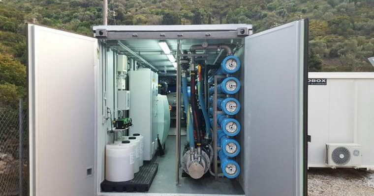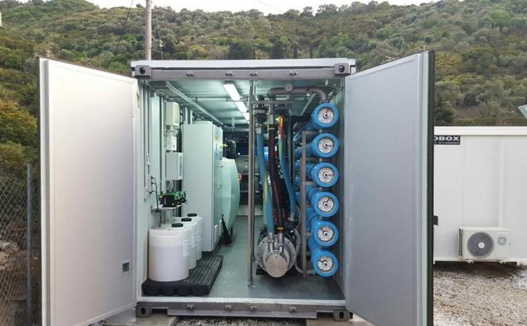 Με σημαντική πρόοδο προχωρούν οι εργασίες εγκατάστασης των δύο νέων μονάδων αφαλάτωσης θαλασσινού νερού που μεταφέρθηκαν την Τετάρτη 26 Ιουνίου στον βιολογικό καθαρισμό των Αγίων Θεοδώρων. Κάθε μονάδα εξ αυτών, έχει δυναμικότητα επεξεργασίας 500 κυβικών μέτρων νερού την ημέρα.