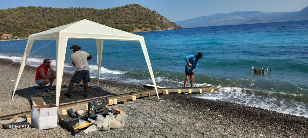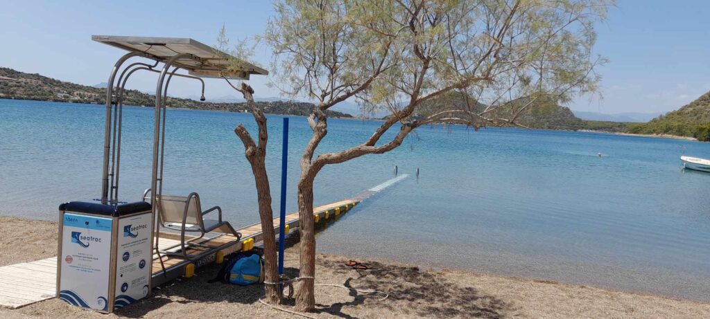 Πρόκειται για τον μηχανισμό Seatrac, μια μη μόνιμη, ενεργειακά αυτόνομη εγκατάσταση που δίνει τη δυνατότητα σε συνανθρώπους μας με κινητικά προβλήματα να απολαύσουν ασφαλή και αυτόνομη πρόσβαση στην θάλασσα. Οι τέσσερις μηχανισμοί έχουν εγκατασταθεί ήδη, ενώ τις επόμενες ημέρες αναμένεται να τοποθετηθεί ο μηχανισμός στην παραλία Αγίων Θεοδώρων.