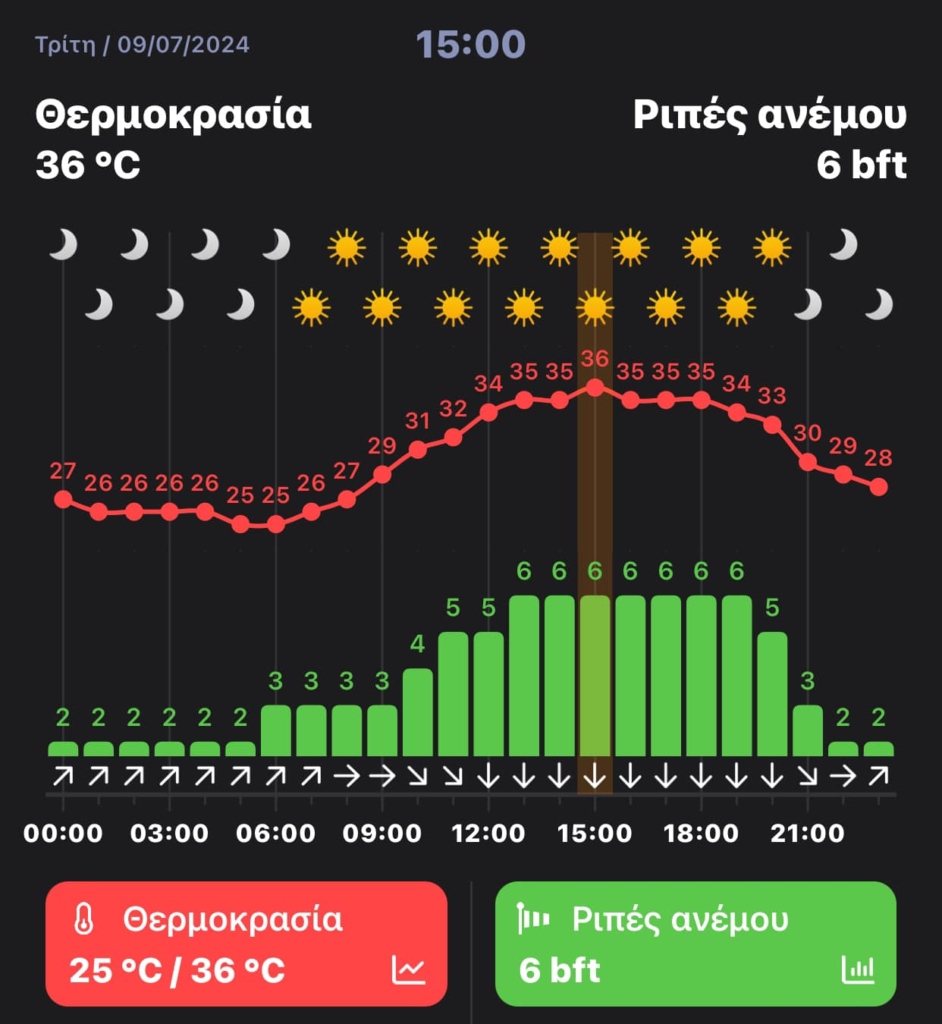 Τριήμερο φωτιά, με καυτό μελτέμι και υψηλές θερμοκρασίες που θα κυμανθούν από 36 μέχρι 39 βαθμούς, προβλέπει ο έγκυρος Άρης Ηλίας για τις επόμενες ημέρες. Άλλα χαρακτηριστικά του καιρού θα είναι η χαμηλή υγρασία (20-30%) και οι τοπικά ισχυροί άνεμοι, με ριπές που θα φτάνουν ακόμα και τα 6-7 μποφόρ, γεγονός που θα κάνει δύσκολο το μπάνιο στην θάλασσα.