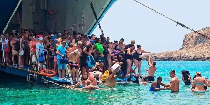 Μπάλος: Ντροπιαστικές εικόνες από την παραλία – Οι τουρίστες μπαίνουν στο νερό για να επιβιβαστούν στα σκάφη