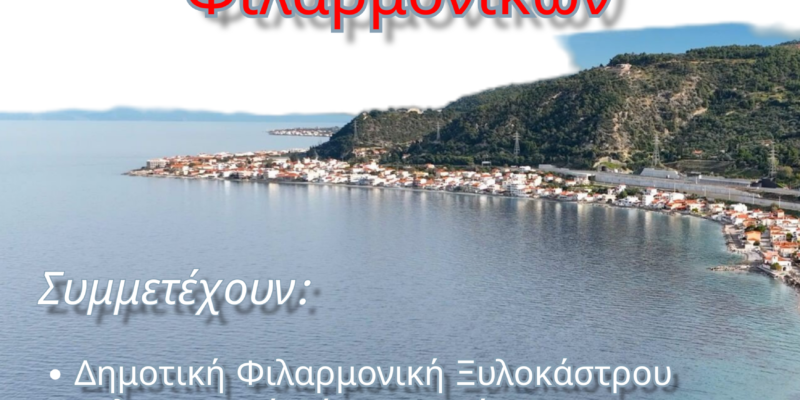 Ο Δήμος Ξυλοκάστρου-Ευρωστίνης και η Δημοτική Φιλαρμονική Δερβενίου σας προσκαλούν στο 6ο Φεστιβάλ Φιλαρμονικών του Δήμου Ξυλοκάστρου – Ευρωστίνης, το Σάββατο 20 Ιουλίου 2024 και ώρα 9.00 μ.μ. στην Κεντρική Πλατεία Δερβενίου Κορινθίας.