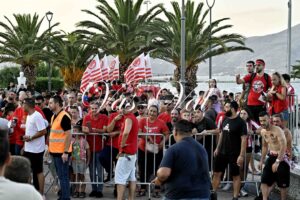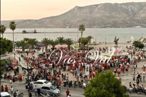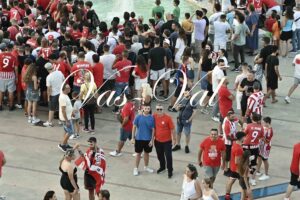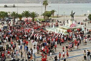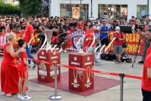 Το ταξίδι των ευρωπαϊκών τροπαίων του Ολυμπιακού ανά την Ελλάδα συνεχίστηκε την Τρίτη (30/7) στην Κόρινθο με την ίδια εντυπωσιακή υποδοχή όπως και στις άλλες πόλεις.