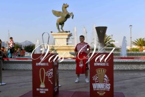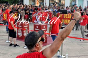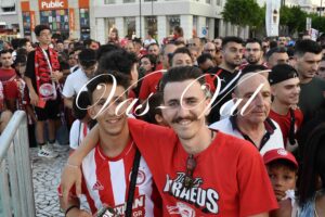 Οι φίλοι του Ολυμπιακού στην Κόρινθο υποδέχτηκαν με θερμό τρόπο τα ευρωπαϊκά τρόπαια της ομάδας. Από νωρίς συγκεντρώθηκε πολύς κόσμος για να δει την κούπα του Conference League και εκείνη του Youth League και να βγάλει φωτογραφίες, ενώ η υποδοχή έγινε με τον ύμνο του συλλόγου.