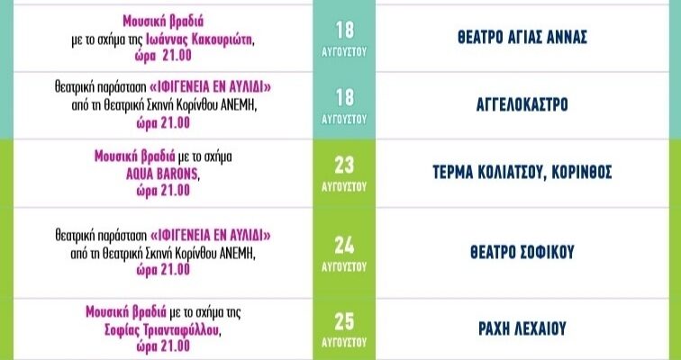 Δείτε ποιες είναι οι προγραμματισμένες εκδηλώσεις του δήμου Κορινθίων για τον ΑΥΓΟΥΣΤΟ