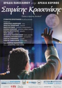 Την Δευτέρα, 19 Αυγούστου ο σπουδαίος τραγουδοποιός έρχεται στην Αρχαία Κόρινθο, για μια συναυλία σε συνεργασία με τον ΣΕΑΚ και την τοπική κοινότητα Αρχαίας Κορίνθου.