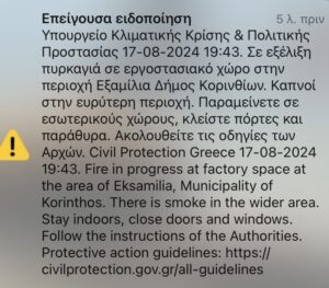 Μηνυμα από το 112 πριν απο λίγο να κλείσουν οι κάτοικοι τις πόρτες και τα παράθυρα. Έχουν σπεύσει δύο αεροπλάνα…