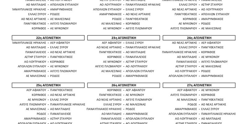 Στην πρεμιέρα, λοιπόν, που έχει προσδιοριστεί για τις 22 Σεπτεμβρίου ο ΑΟΛ θα παίξει εντός έδρας με την ΑΕ Μαλεσίνας και ο ΠΑΣ, εκτός έδρας, με τον ΑΟ Μιλτιάδη Τριφυλίας. Οι δύο ομάδες του νομού θα παίξουν μεταξύ τους την 7η (ΑΟΛ – ΠΑΣ) και την 22η αγωνιστική (ΠΑΣ – ΑΟΛ).