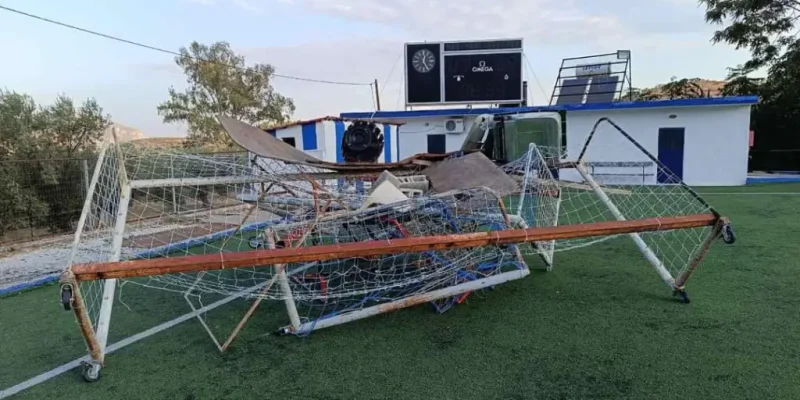 Σπασμένα καθίσματα από τις κερκίδες, κομμένα δίχτυα από τα τέρματα του γηπέδου, καταστραμμένοι κάδοι σκουπιδιών, αναποδογυρισμένα τέρματα, κατεστραμμένα τέρματα που χρησιμοποιούν τα παιδιά των ακαδημιών μας.