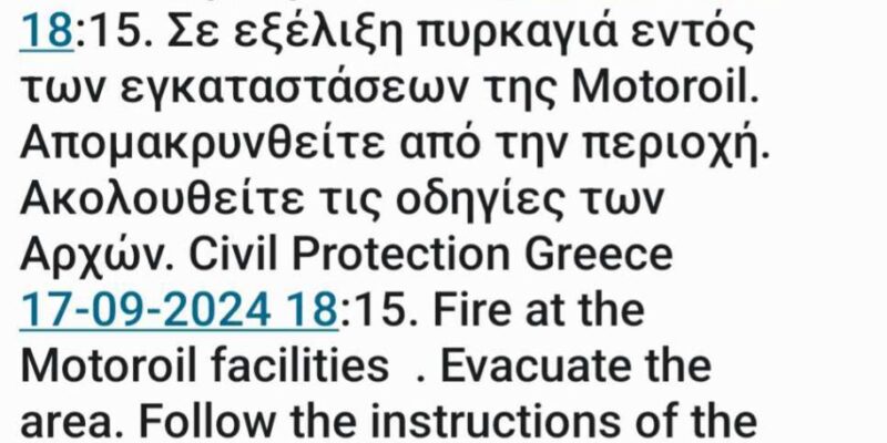 ΕΠΙΚΑΙΡΟΤΗΤΑ Το μηνυμα από το 112 για την φωτιά στην Μοτορ Οιλ By KORINTHIA.NET.GR.2 17/September/2024 ShareTweet 0