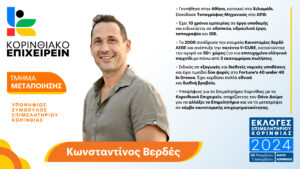 Επιθυμούμε ο Επιμελητηριακός θεσμός να επανακαθορίσει τον ουσιαστικό του ρόλο, την σημαντικότητα και την παρεμβατικότητά του στον πολιτικό διάλογο, με μοναδικό στόχο να συμβάλλει και να διεκδικήσει με τις προτάσεις του καλύτερες προϋποθέσεις για τον επιχειρηματικό κόσμο  της Κορινθίας.” σημείωσε ο επικεφαλής του ΚΟΡΙΝΘΙΑΚΟΥ ΕΠΙΧΕΙΡΕΙΝ.