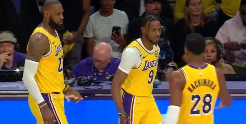 Όπερ και εγένετο! Κατά τη διάρκεια της 2ης περιόδου στην πρεμιέρα των Λέικερς στην «crypto.com Arena» του Λος ΆντζελεςΛεμπρόν και Μπρόνι πέρασαν ταυτόχρονα στο παρκέ προκαλώντας πραγματικό πανδαιμόνιο στις εξέδρες.