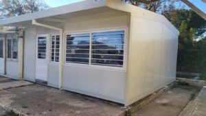 Ανταπόκριση σε ένα πάγιο αίτημα της εκπαιδευτικής κοινότητας του σχολικού συγκροτήματος «Γυμνάσιο – Λυκειακές Τάξεις Λεχαίου» έδωσε μέσα στις γιορτές ο Δήμος Κορινθίων. Στο προαύλιο του σχολείου τοποθετήθηκε σήμερα μία νέα προκατασκευασμένη αίθουσα, η οποία θα μπορεί να χρησιμοποιηθεί κατά το δοκούν από την διεύθυνση του σχολείου.