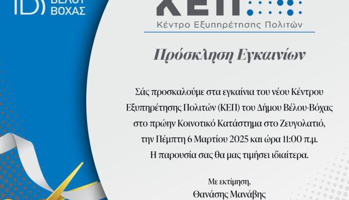 Τα εγκαίνια του νέου Κέντρου Εξυπηρέτησης Πολιτών (ΚΕΠ) στο Ζευγολατιό θα γίνουν αύριο (Πέμπτη) το πρωί, στις 11.00!