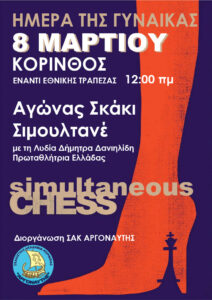 Σας περιμένουμε όλους και όλες να γιορτάσουμε την σημαντική αυτή ημέρα. Ελάτε να γνωρίσετε μια Ελληνίδα πρωταθλήτρια Σκακιού και τιμήσουμε όλοι μαζί την σημαντική αυτή ημέρα.