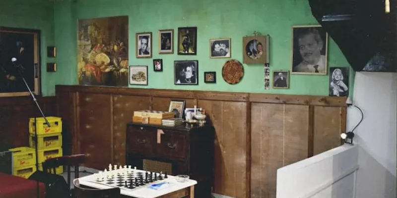 Με “σχολιασμούς” που βρίσκει κάποιος θεατής στα διακοσμητικά στοιχεία του καφενείου. Άλλοτε είναι πιο ξεκάθαροι και άλλοτε πιο υπαινικτικοί.