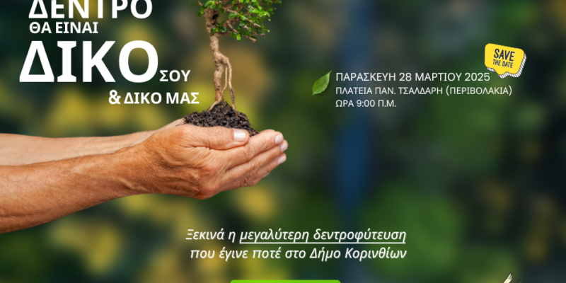 Η δράση που θα αλλάξει την εικόνα της πόλης, με την φύτευση εκατοντάδων δένδρων, θα ξεκινήσει την Παρασκευή, 28 Μαρτίου 2025, στις 9.00 το πρωί, από την Πλατεία Περιβολάκια.