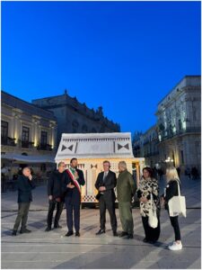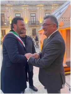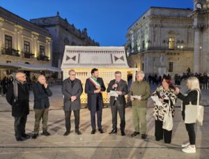 Ο Δήμαρχος Συρακουσών Francesco Italia καλωσόρισε ένθερμα τον Δήμαρχο Κορινθίων Νίκο Σταυρέλη και όλη την αντιπροσωπεία της Κορίνθου στην κατάμεστη Piazza Duomo στην Ορτυγία, με φόντο την εγκατάσταση με την ονομασία «Οίκος» – αναπαράσταση της πρώτης οικίας της αρχαίας πόλης στο σημείο που χτίστηκε από τους Κορίνθιους έποικους, καθώς και τον επιβλητικό Καθεδρικό Μητροπολιτικό Ναό της Γεννήσεως της Θεοτόκου σικελικού μπαρόκ, που χτίστηκε πάνω και ενσωματώνοντας στη βάση του με ευλάβεια τα ερείπια και τους κίονες του αρχαιοελληνικού Ναού της Αθηνάς δωρικού ρυθμού.