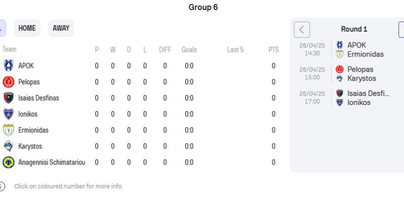 Το πρόγραμμα των αγώνων 6ος όμιλος