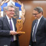 - στο Πανεπιστήμιο Πελοποννήσου με τον πρόεδρο του Τμήματος Κοινωνικής και Εκπαιδευτικής Πολιτικής, Θανάση Τζιμογιάννη.