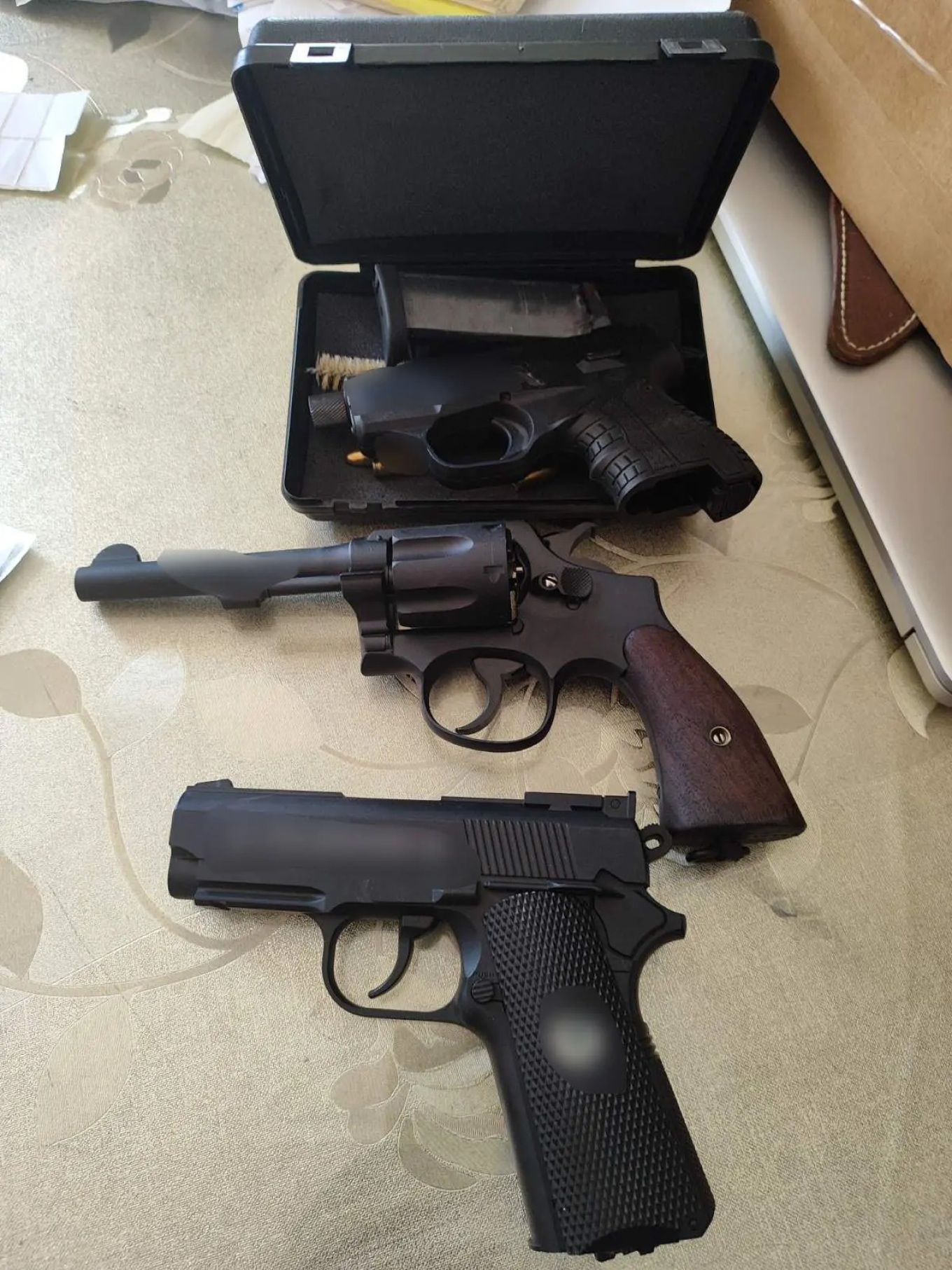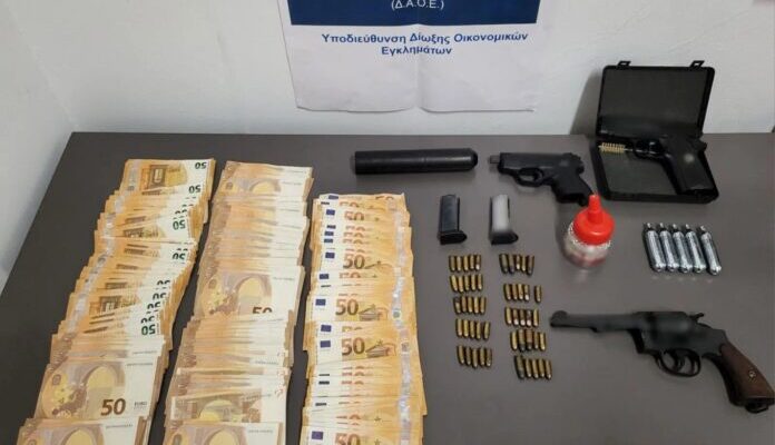 17.389 συσκευασίες παρανόμως συνταγογραφηθέντων φαρμακευτικών σκευασμάτων, μεταξύ των οποίων και σκευάσματα που περιέχουν ναρκωτικές ουσίες, περίστροφο και πιστόλι με σιγαστήρα, αεροβόλο πιστόλι με αμπούλα, κυνηγετική καραμπίνα, 51 φυσίγγια διαφόρων διαμετρημάτων, πλήθος εγγράφων (χειρόγραφες σημειώσεις με πληρωμές ιατρών, συνταγές/ γνωματεύσεις κλπ), κινητά τηλέφωνα και το χρηματικό ποσό των 13.050 ευρώ.