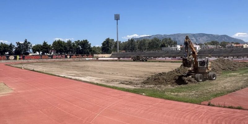 Άρχισε σήμερα η κατασκευή του νέου υπερσύγχρονου φυσικού χλοοτάπητα στο δημοτικό στάδιο Κορινθου.