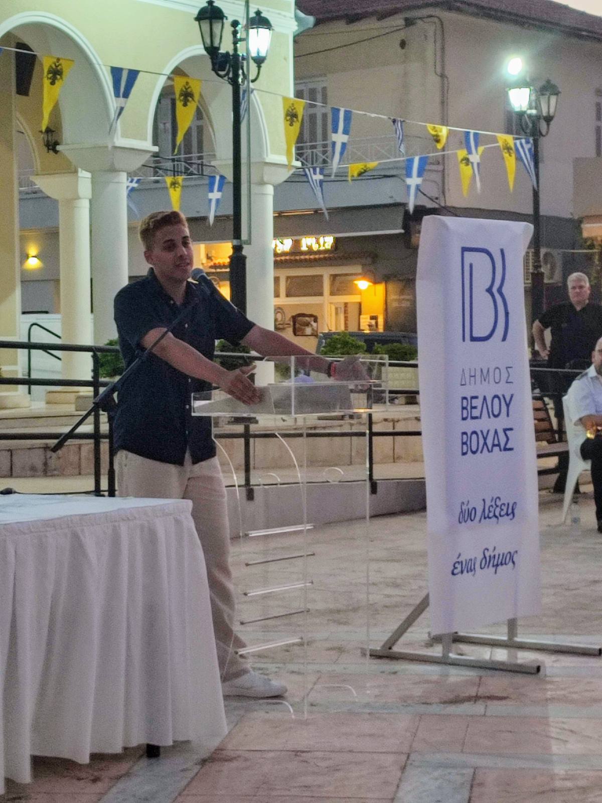 Ο δήμαρχος Βέλου-Βόχας, Θανάσης Μανάβης, στον χαιρετισμό του ευχαρίστησε όλους όσοι συνέβαλαν σε αυτή τη «σεμνή και παράλληλα λαμπρή διοργάνωση», υπογραμμίζοντας ότι «ονομάζοντας την πλατεία του Βραχατίου με το όνομα του Γιώργου Λιούντρη, δεν τιμούμε μόνο το παρελθόν, αλλά θέτουμε και ένα ηθικό πρότυπο για το μέλλον».