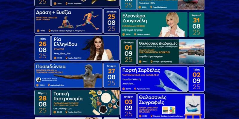 Από τις 24 Αυγούστου ως τις 4 Σεπτεμβρίου, η θάλασσα, ο πολιτισμός και η παρέα γίνονται ένα στον Δήμο Κορινθίων!